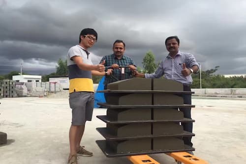 In July 2010, the customer found us for one machine to make fly ash solid brick in Bangalore, customer came to our factory and check the running site, he thought the QT4-15 with pallet size :980*560 is suitable for him production.